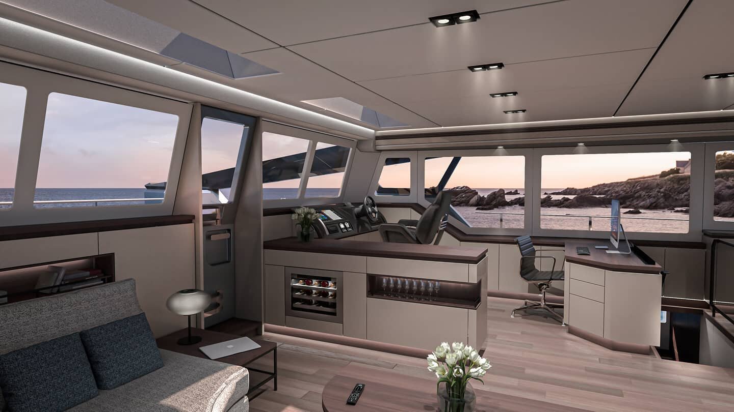 Revealing the new a collection of interiors for our electric catamarans.